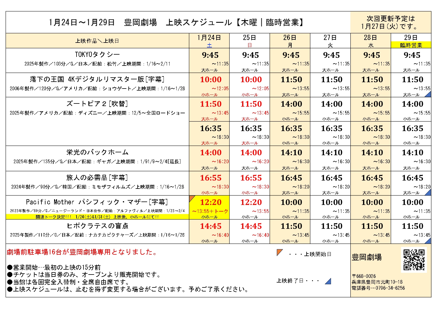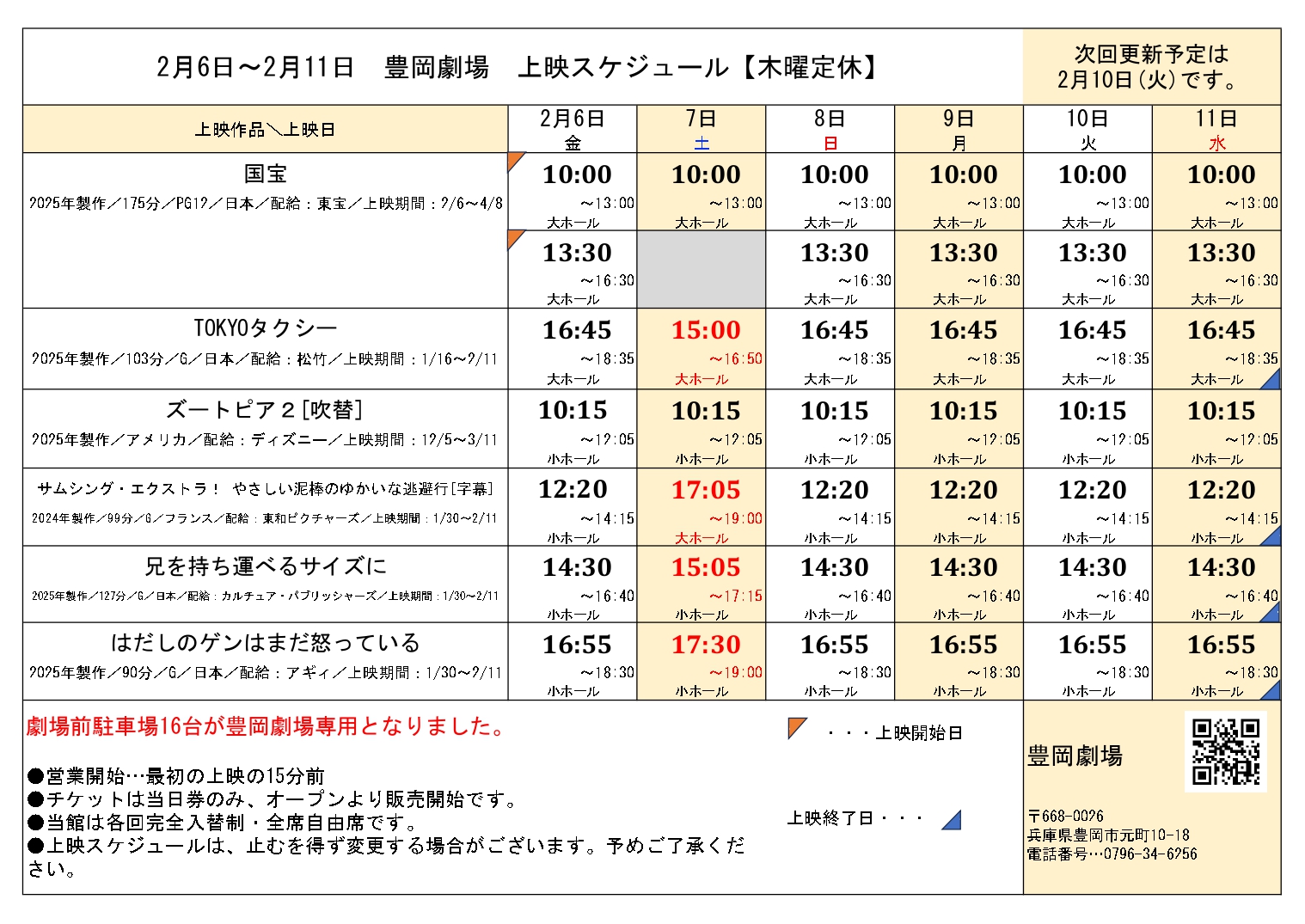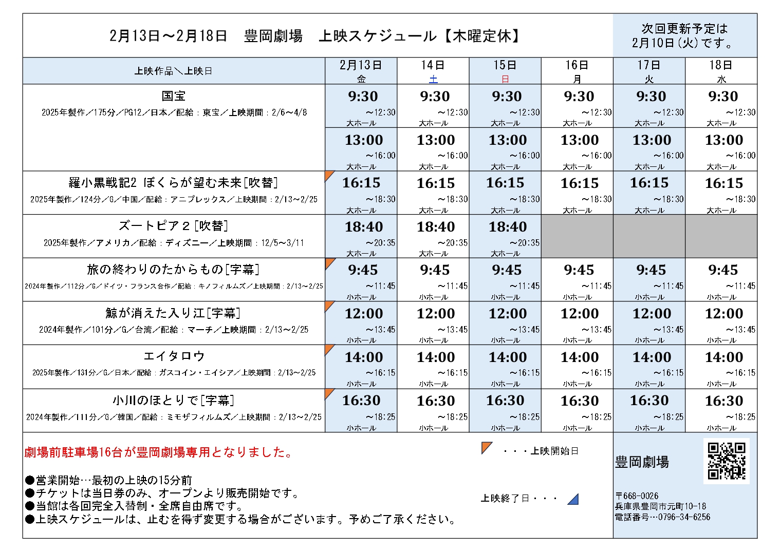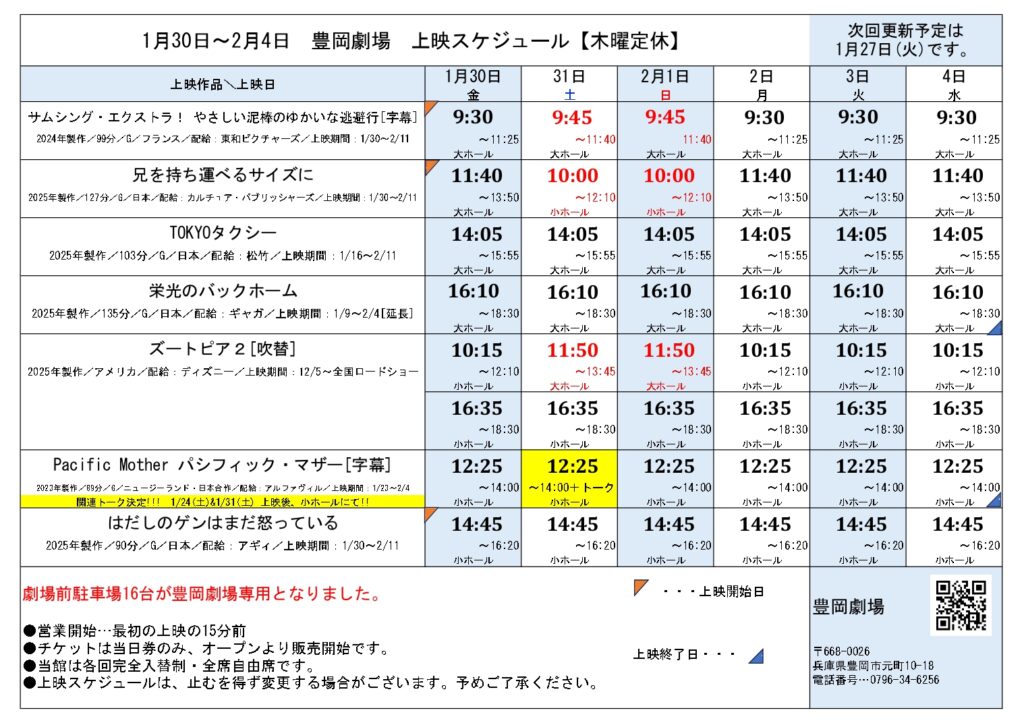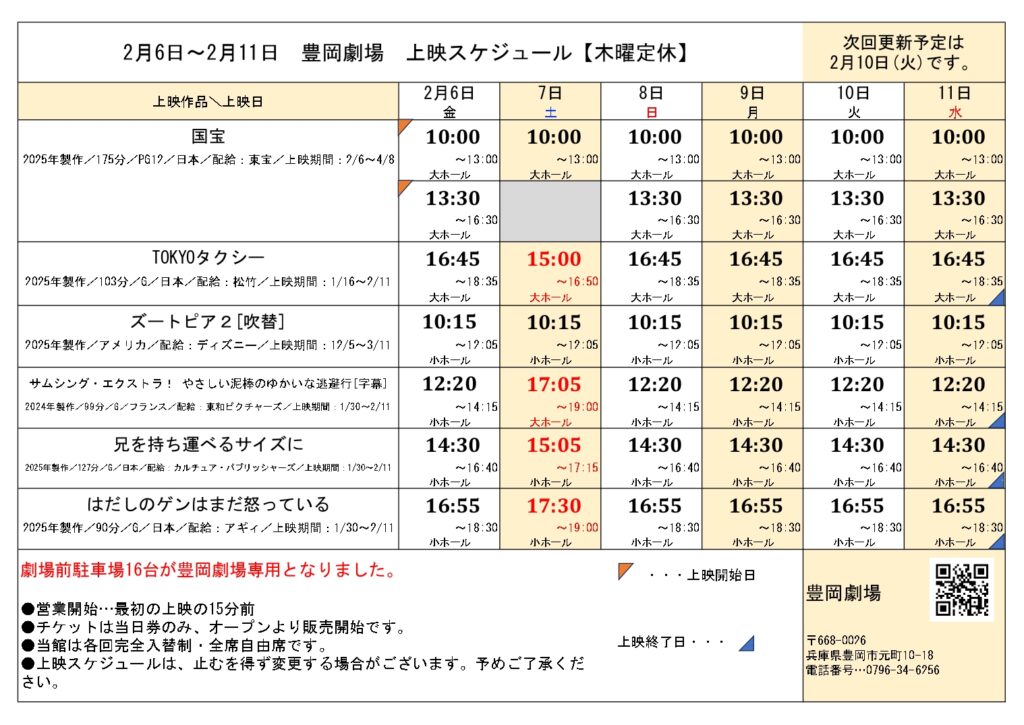 • 大雪による臨時休業および振替上映のお知らせ