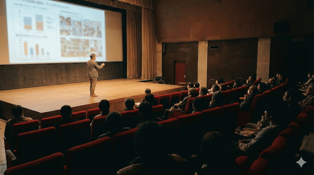 「映画館という特別な空間で、大きなスクリーンを使って発表できたのは良い経験でした。照明や会場の雰囲気も相まって、場の空気が自然と締まりました。」